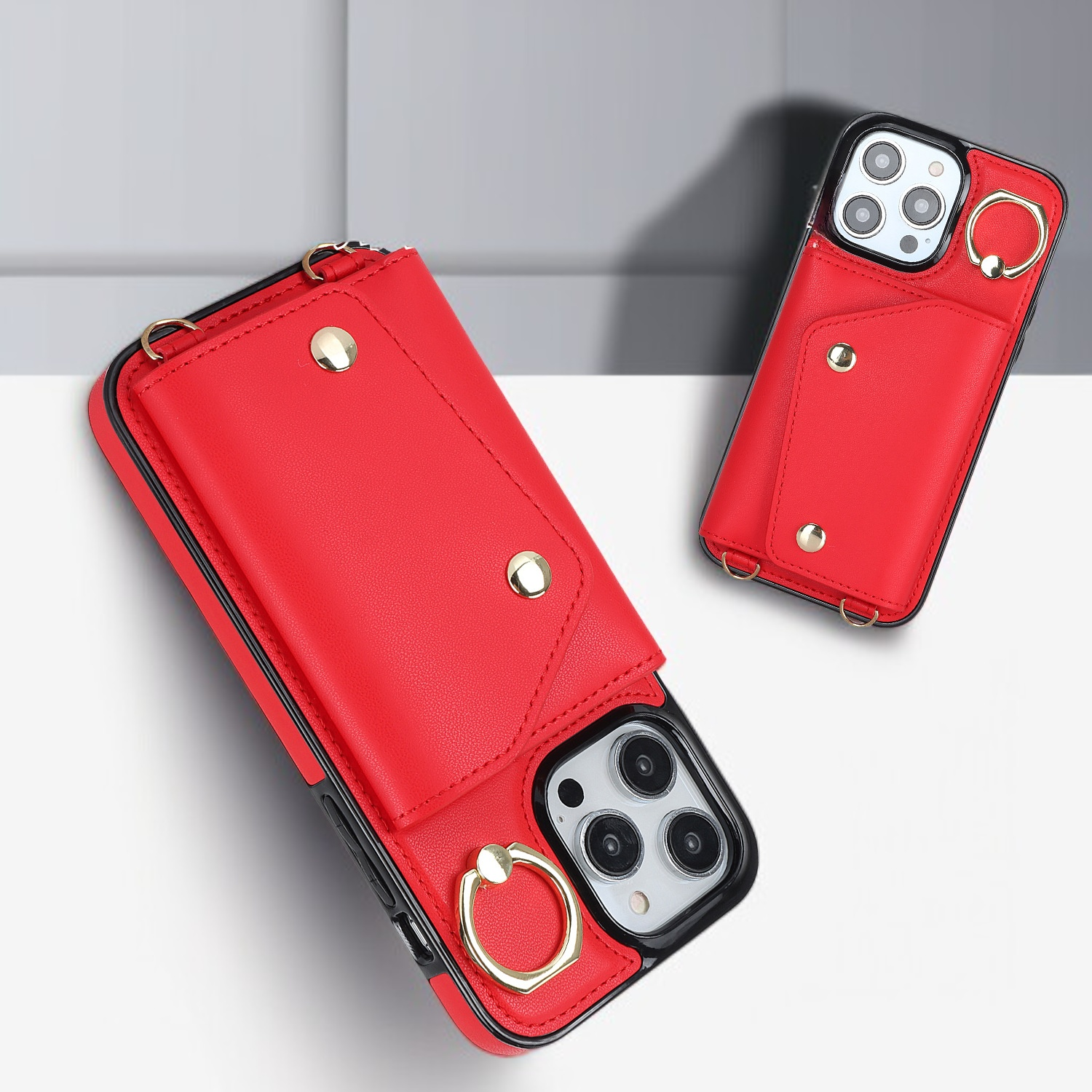 iPhone 16 크로스바디 케이스, Apple 15 Pro Max와 호환, 지퍼와 카드 슬롯이 있는 지갑형 보호 케이스.